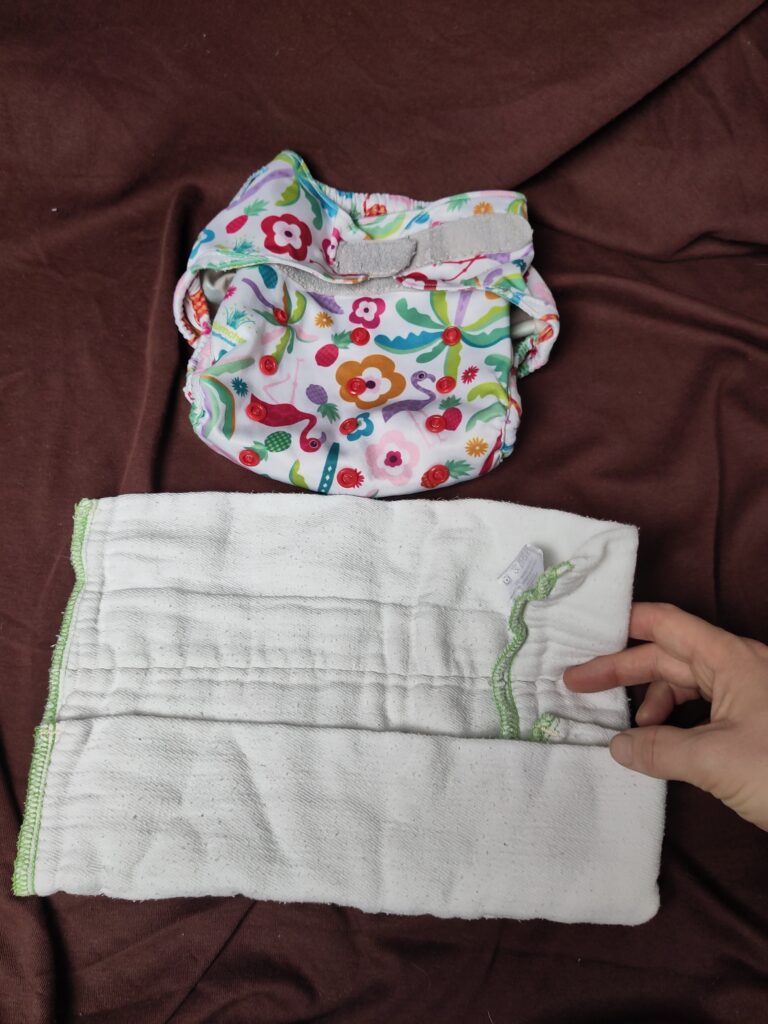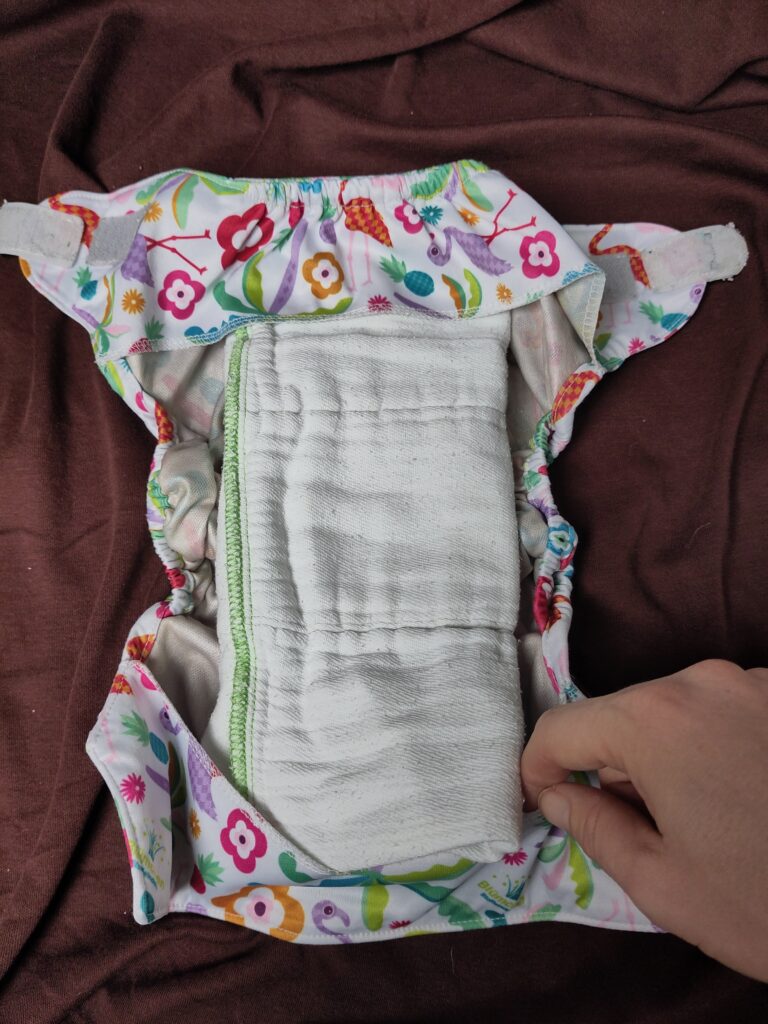 Bij het verschonen kun je de prefold in de luieremmer doen en het overbroekje te luchten hangen wanneer er geen ontlasting op het overbroekje is gekomen. Zo kan een overbroekje een paar verschoningen mee gaan.