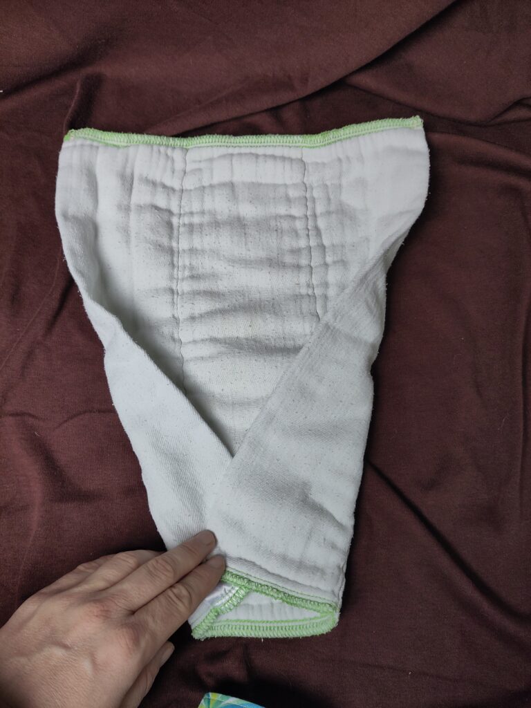 Er zijn 2 manieren om een prefold te gebruiken. De simpelste manier is om hem in een reep te vouwen, en hem in een overbroekje te leggen, dat noemt je padfold. Zo kun je alles in 1 keer aandoen.